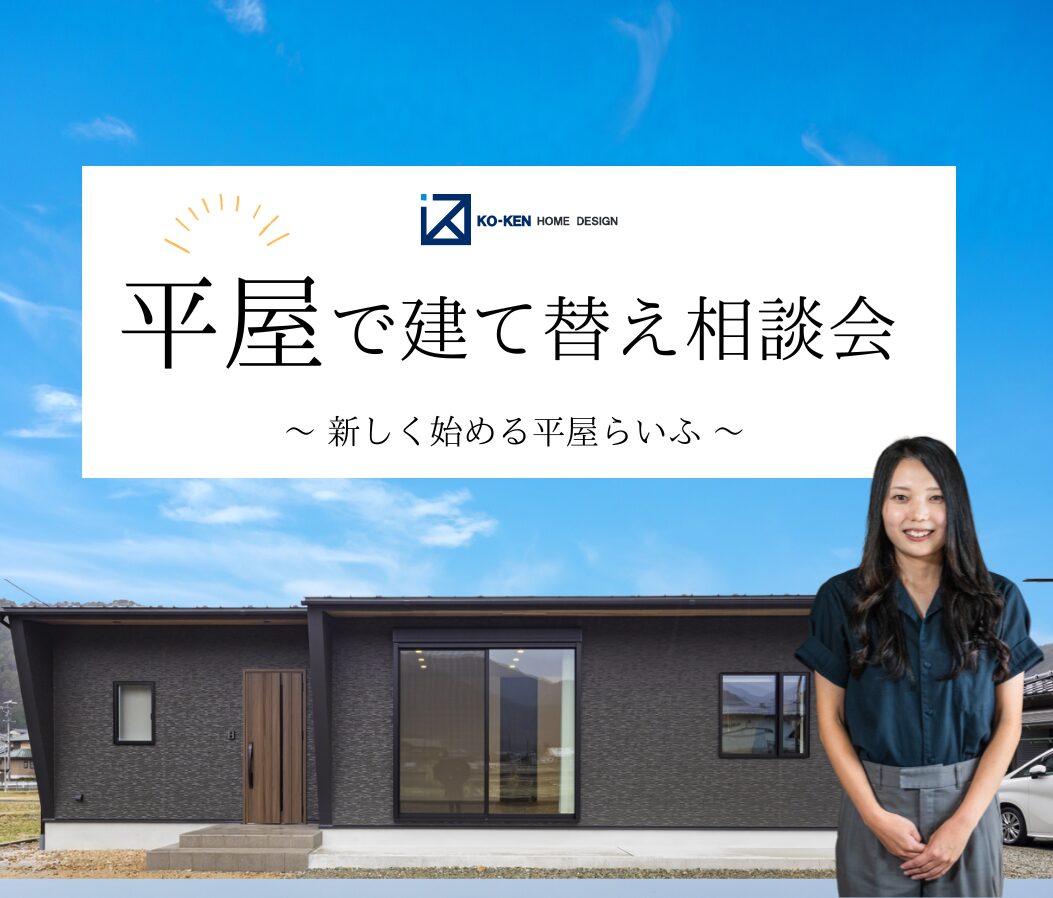 KO-KEN HOME DESIGINの“平屋らいふ。”では安心安全で高性能の平屋のお家をご提案しております。