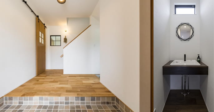 入り口のシューズクロークから3カ所の収納が大活躍。