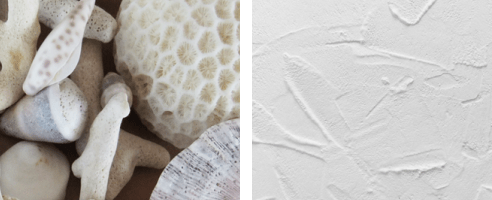 サンゴの特徴は、多孔質で調湿・消臭効果に優れていること。ホルムアルデヒドなどの有害な化学物質、たばこやトイレの匂いを吸着し、キレイな空気を出してくれます。蒸し暑い夏は湿気を吸収し、乾燥する冬は水分を放出する、まるで家全体が呼吸をしているような体感ができます。