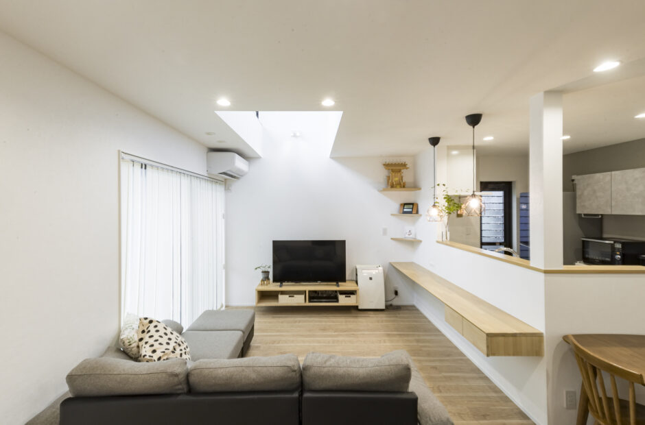 造作のキッチンカウンターには収納を付けてより便利に